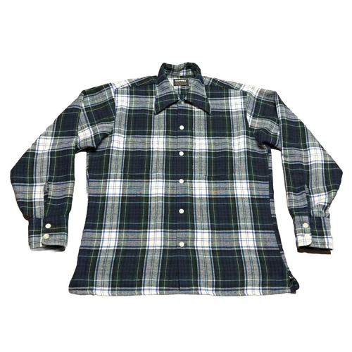 Vtg Travella Manhattan Perm Press Button Shirt M Blue Plaid Wool Blend Travera