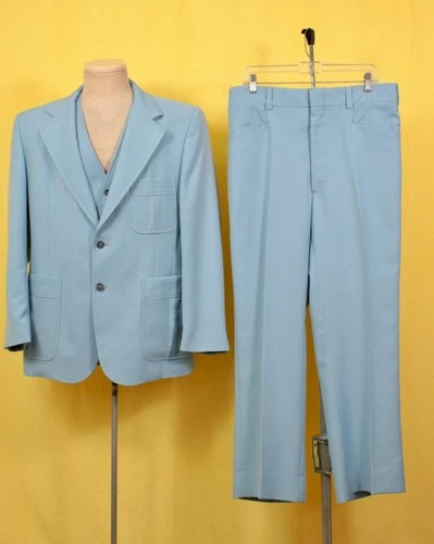Mens VTG 70s Light Blue 2 PC Leisure Suit Sz 42 R 1970s Disco Polyester