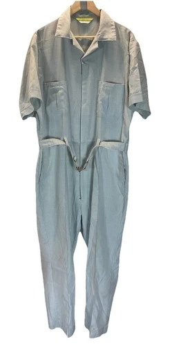 WALLS Vtg 60s 70s Jumpsuit One Piece Leisure wear Mr. Roper Disco LG blue plaid