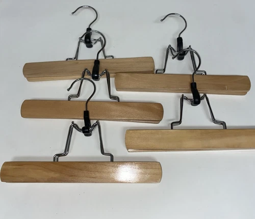 Lot of 5 Vintage Wood Hangers Pants / Skirts 9” Clamp Hangers