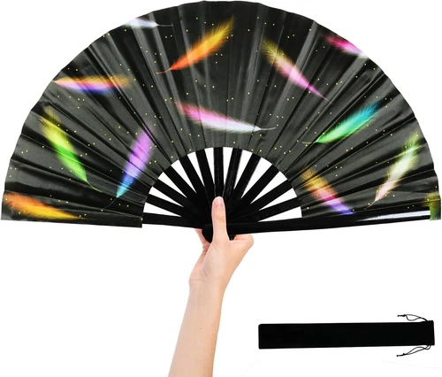 UV Glow Fan - Large Foldable Hand Bamboo Fan, Women and Men Gift - Perfect for M