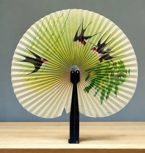 Vintage Portable Paper Hand Fan with Swallow Birds and Flowers Design