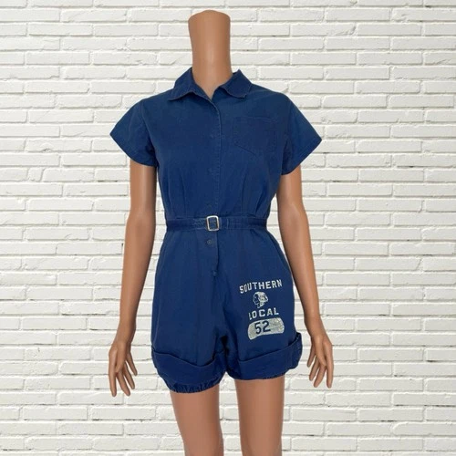 Vintage 50s Cotton Gym Romper Playsuit - Blue Sporty 1952 Xs