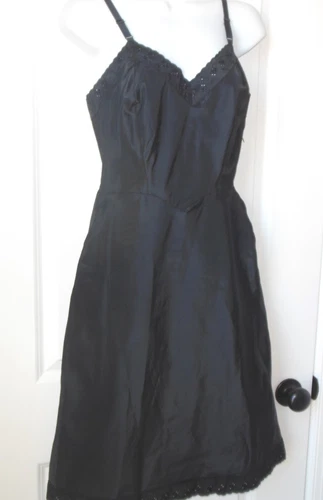 Ariel Barbizon Full Slip sz 12 Black Tafredda Bias Cut Vtg 1950's Adj Straps