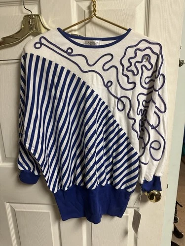 90s Ugly Sweater Nautical NWT Striped Oversized Abstract Blue White Large Top