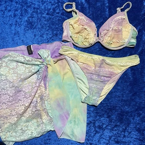 Vintage Endless Sun Swimsuit 3 Pc Bikini With Sarong Size M/L Y2K 2000s Festival