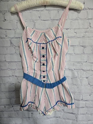 Vintage 1950/60s Rose Marie Reid Swimsuit White Pink Blue Babydoll Romper