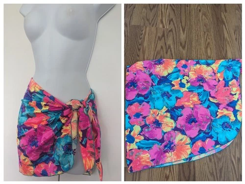Vintage 90’s Jag Neon Floral Sarong swimsuit cover up tie wrap skirt USA