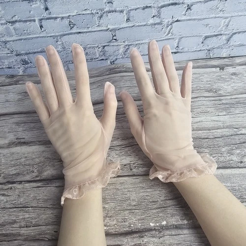 Vintage Sheer Dusty Pink Ruffle Wrist Gloves Elegant Formal Wedding Bridal