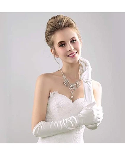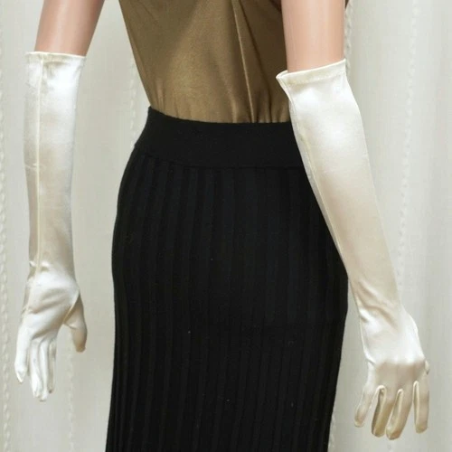 Ivory Cream Satin Opera Length Evening Gloves Formal Wedding Bridal Elbow Length
