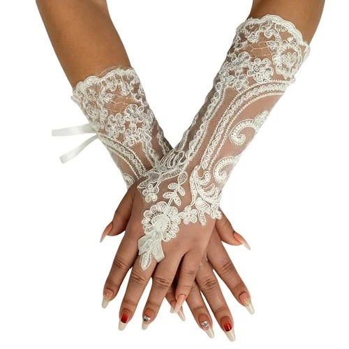 Retro Syle Lace Flower Bride long sexy Gloves Wedding White Medium,