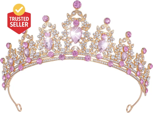 Princess Tiaras for Women, Gold Crystal Crown for Birthday, Wedding Headbands fo