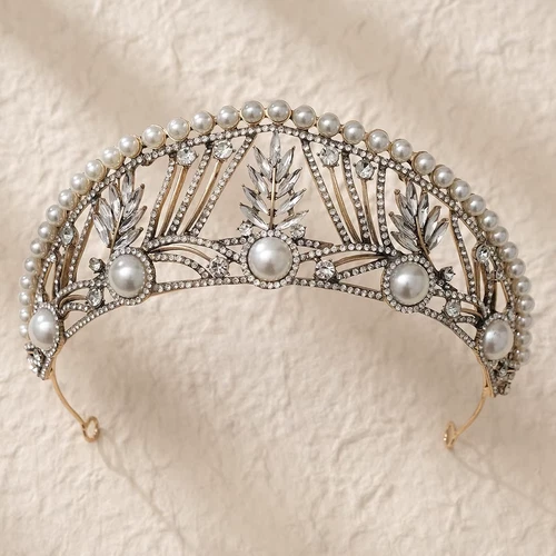 Baroque Vintage Crystal Pearls Bridal Tiaras Crown Rhinestone CZ Headbands