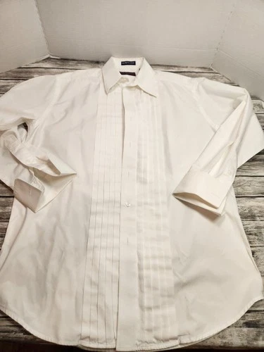 Formal Shirts White Pleated Front Tuxedo Shirt Long Sleeve Mens 16-16 1/2 32/33