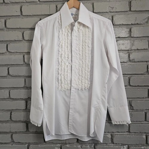 After Six Vintage Ruffle Front Lace Trim Tuxedo Shirt White Mens 15 32 Formal