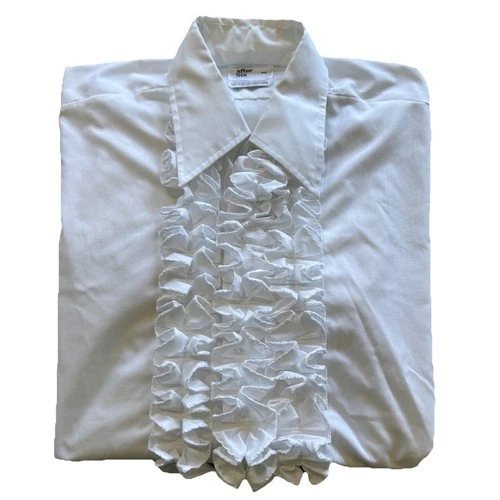 VTG 70s AfterSix Mens Formal Tuxedo Shirt White Ruffle Front French Cuff Prom M6