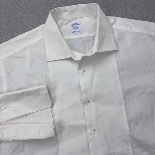 Brooks Brothers Tuxedo Shirt Men 17.5 38 White Pique Bib French Cuff Formal FLAW