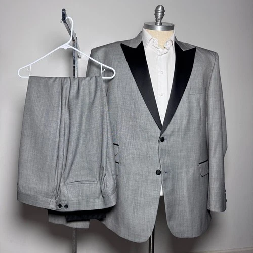 International Collection Tuxedo Suit Mens 52XL 46x34 Grey Peak Lapel Formal