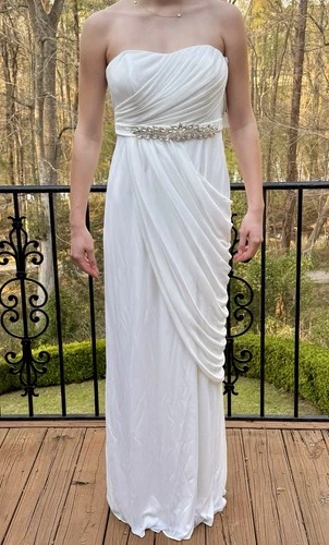 Strapless Mesh Column Formal Dress White Full-Length Size 10
