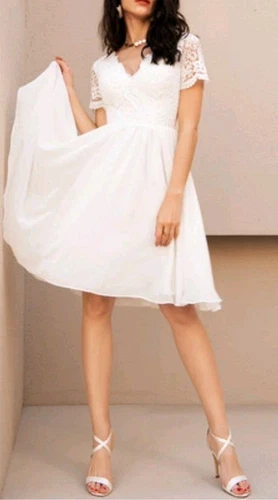 JJ House wedding dress 34Bust 26Waist Lace Chiffon Knee-length White Fit & Flare
