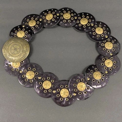 Vintage Y2K Concho Brass Buckle Belt Western Boho Bohemian Cowgirls Coachella