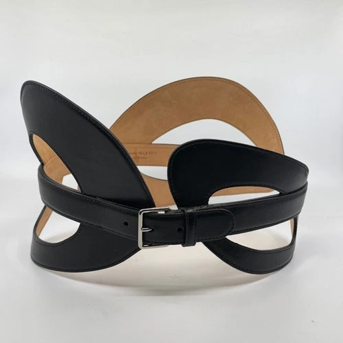 Alexander McQueen Black Leather Sculptural "The Curved Belt"