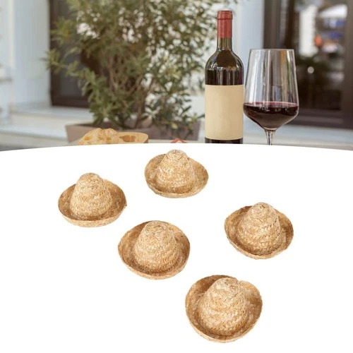 5Pcs Mini Sombrero Straw Hats 3.7in Diameter Retro Simple Style Multi Purpose