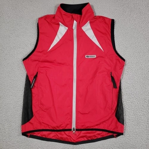 BROOKS Full Zip Running Vest Womens Small Red Lightweight Pockets Mesh Packable