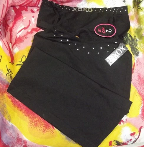 NEW XOXO XO3791 BLACK MF ADJUSTABLE STRAPS BLING 2PC CAMISOLE & BOYSHORT SET S