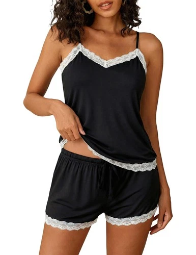 Avidlove Camisole Pajamas Set Lace Trim Pj Short Sets Medium, Black White