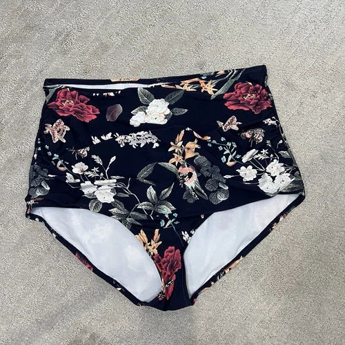 Cocoship Women's 3XL Navy Floral High Waist Tummy Control Bikini Swim Bottom