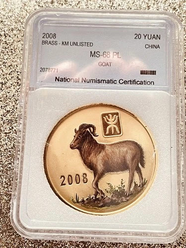 2008 China 20 Yuan Year of the Goat Proof Enameled Brass Medal Coin