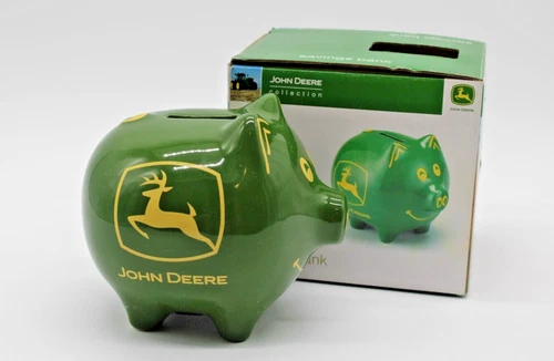 John Deere Green PIG Piggy Bank With Box NEW 2009 Collectible Stoneware