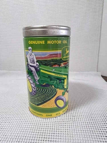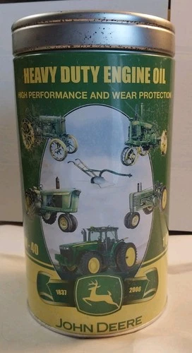 John Deere 1QT 15W-40 Oil Can Coin Bank Tin Tractor 1837-2006 Heavy Duty Vintage