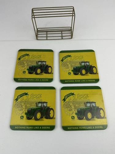 John Deere Metal Cork Coasters In Metal Rack Set of 4