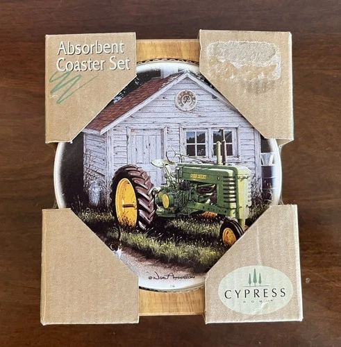 John Deere Coasters Set of 4 Cork Barn Tractor Father Son Country Life