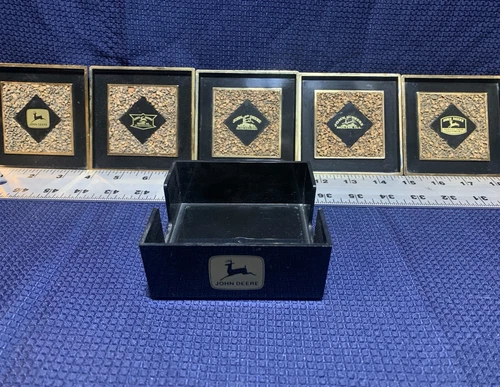 Five Vintage John Deere Moline Coasters & Holder - Classic Logos - Free Shipping