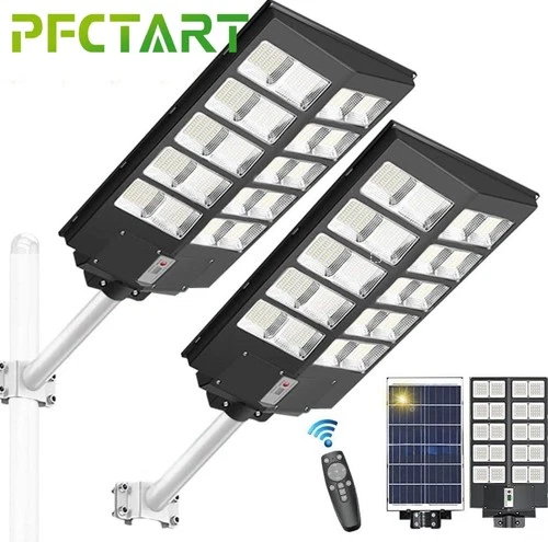 2PACK 2000W Commercial Solar Street Light LED Bright Outdoor 3 Lighting Modes