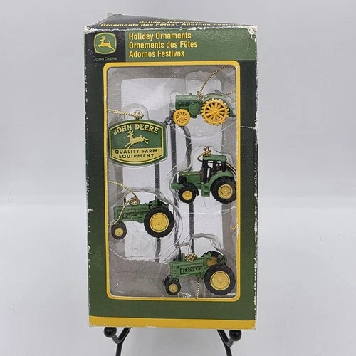 5 John Deere Miniature Holiday Ornaments Hat, New Open Box