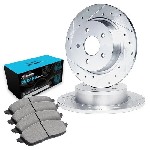 R1 Concepts Rear Brakes and Rotors| Drilled Slotted Brake Rotors| Rear Cerami...