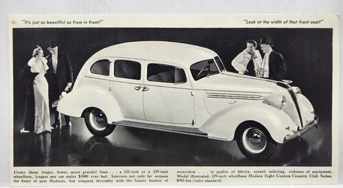 1937 Hudson Eight Custom Country Club Sedan Original Print Ad Life Magazine 30s