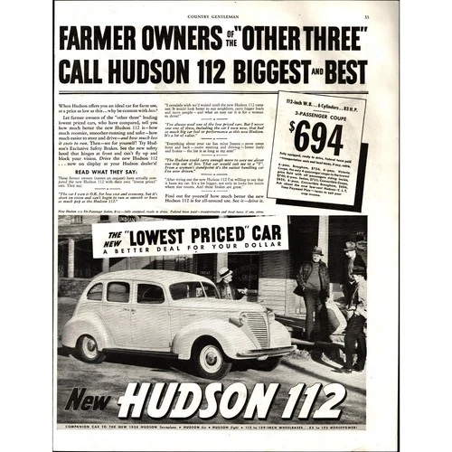 Original 1938 Hudson 112 Four Door Sedan Ad OWNERS CALL HUDSON ..BIGGEST & BEST