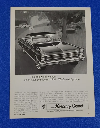 1965 MERCURY COMET CYCLONE ORIGINAL B & W PRINT AD CLASSIC AMERICAN MUSCLE CARS