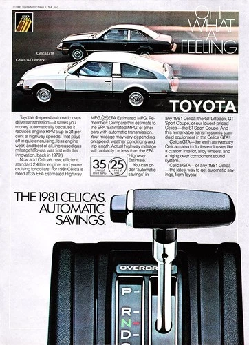 1981 Toyota Celica GT and GTA - "Automatic Savings" Vintage Print Ad