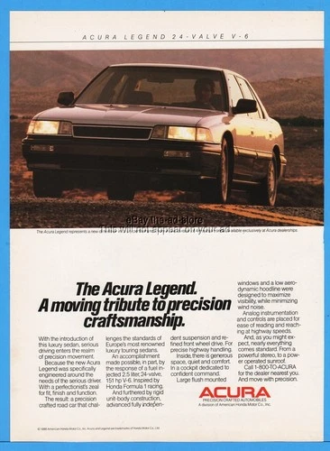 1986 Acura Legend Sedan 24 Valve V6 Moving Tribute Honda Car Ad
