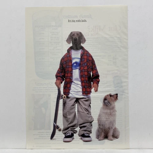 2000 Honda Odyssey Vintage Print Ad 2 Page Weimaraner Dog Dressed as Kid Skate