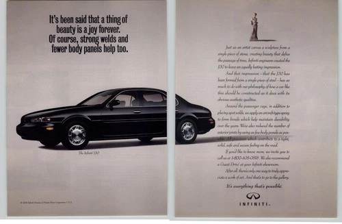 1994 Vintage Car Print Ad Black Infiniti J30 Luxury Sedan Magazine Advertisement