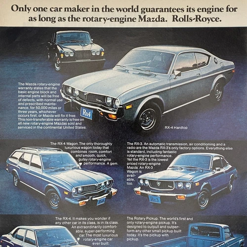 1975 Mazda Rotary Engine PRINT AD vs Rolls Royce Truck Cars RX-4 Wagon Vtg 70s