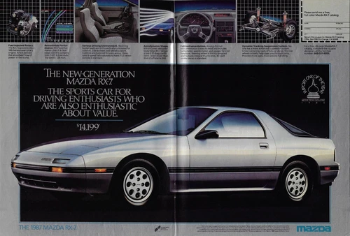 1987 Mazda RX-7 New-Generation Sports Car Driving Enthusiast Vintage Print Ad