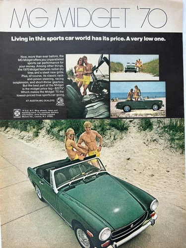 Vintage 1970 MG Midget original color ad A610